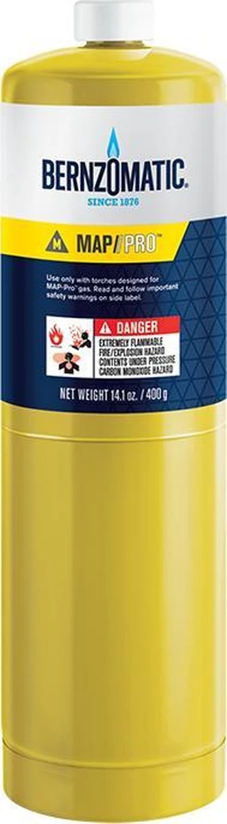 De Bernzomatic wegwerp cilinder / gaspatroon met 400 gram MAP-Proâ„¢. Is geschikt voor alle Bernzomatic branders met een MAP-PRO logo. Meest geschikt voor hardsolderen of het verhitten in verkorte tijd.