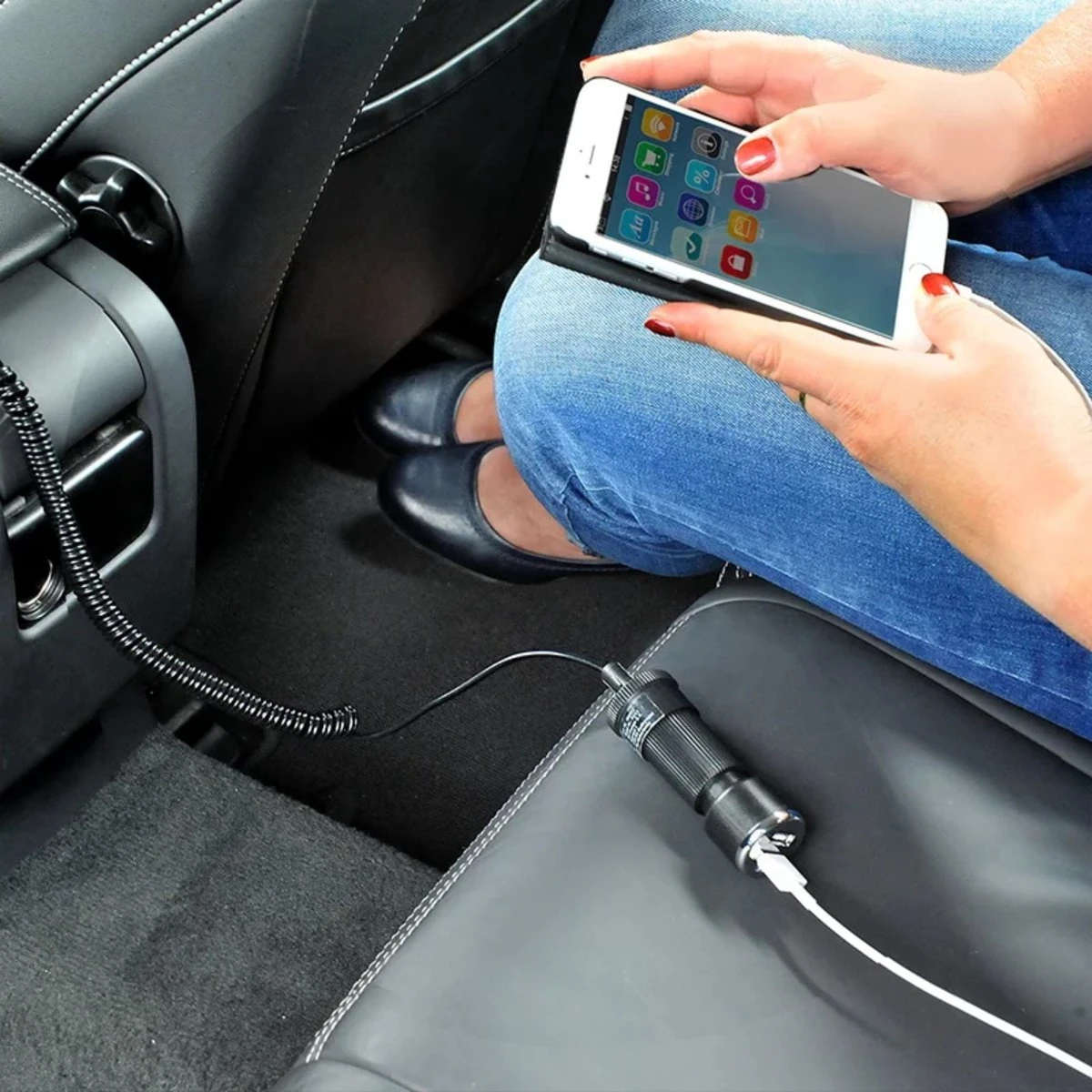 Met de handige kabel kunnen ook de passagiers op de achterbank gebruik maken van de sigarettenaansteker.